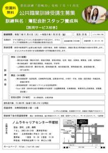 令和7年11月生簿記会計スタッフ養成科パンフレット(1ページ目)